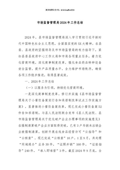 / 【七哥公文】2024年:市场监督管理局2024年工作总结+更多免费公文+VX:QiGeGongWen2024