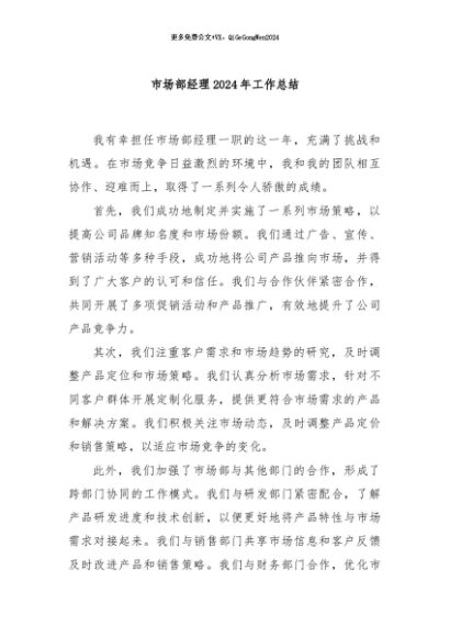 【七哥公文】2024年:市场部经理2024年工作总结+更多免费公文+VX:QiGeGongWen2024