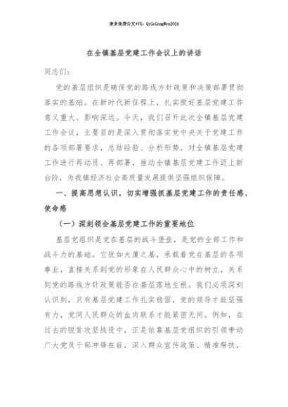 / 【七哥公文】2024年:在全镇基层党建工作会议上的讲话+更多免费公文+VX:QiGeGongWen2024