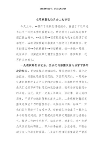 / 【七哥公文】2024年:在巡察整改动员会上的讲话+更多免费公文+VX:QiGeGongWen2024