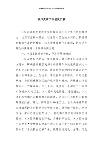 / 【七哥公文】2024年:城市更新工作情况汇报+更多免费公文+VX:QiGeGongWen2024