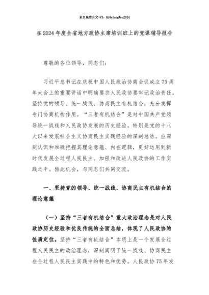 【七哥公文】2024年:在2024年度全省地方政协主席培训班上的党课辅导报告+更多免费公文+VX:QiGeGongWen2024