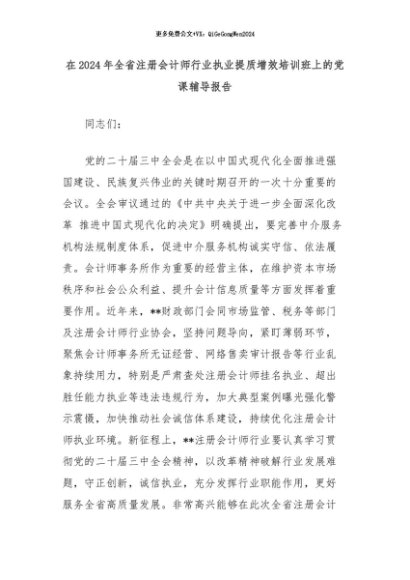 【七哥公文】2024年:在2024年全省注册会计师行业执业提质增效培训班上的党课辅导报告+更多免费公文+VX:QiGeGongWen2024
