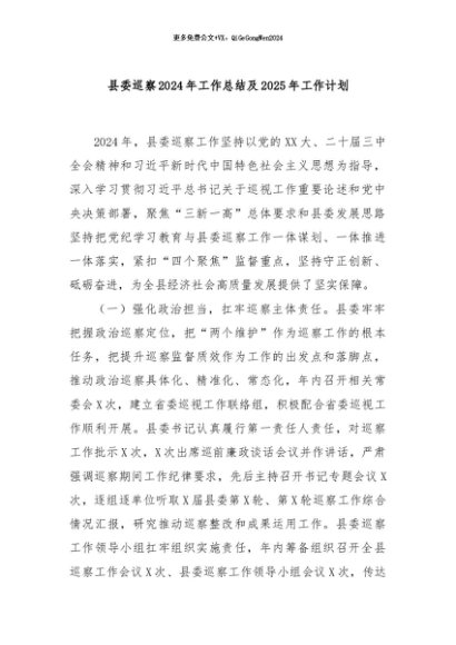 / 【七哥公文】2024年:县委巡察2024年工作总结及2025年工作计划+更多免费公文+VX:QiGeGongWen2024