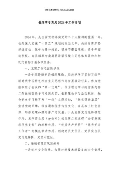 / 【七哥公文】2024年:县烟草专卖局2024年工作计划+更多免费公文+VX:QiGeGongWen2024