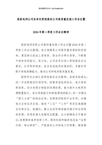 【七哥公文】2024年:国家电网公司各单位贯彻落实公司高质量发展工作会议暨2024年第二季度工作会议精神+更多免费公文+VX:QiGeGongWen2024