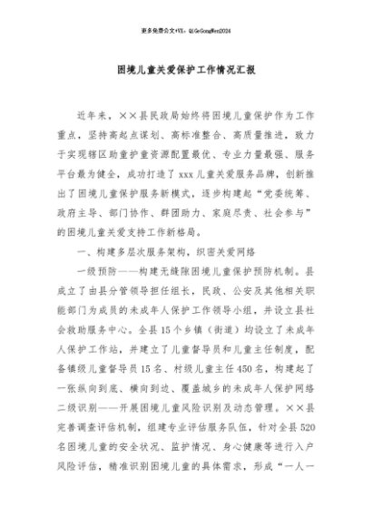 / 【七哥公文】2024年:困境儿童关爱保护工作情况汇报+更多免费公文+VX:QiGeGongWen2024