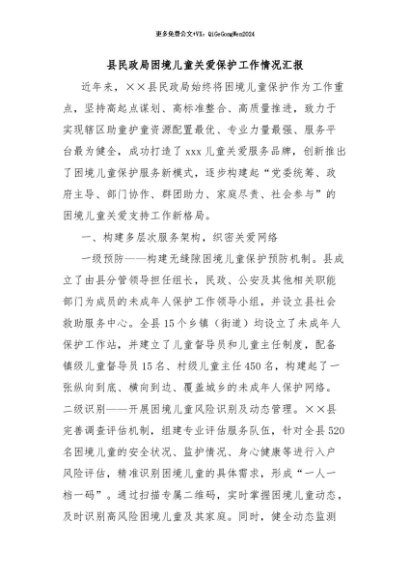 / 【七哥公文】2024年:县民政局困境儿童关爱保护工作情况汇报+更多免费公文+VX:QiGeGongWen2024