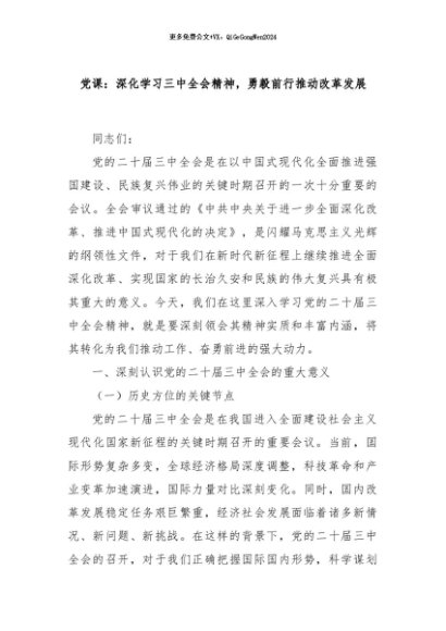 / 【七哥公文】2024年:党课:深化学习三中全会精神,勇毅前行推动改革发展+更多免费公文+VX:QiGeGongWen2024