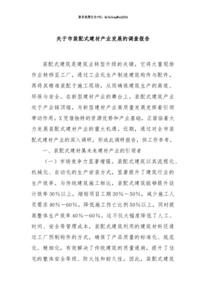 / 【七哥公文】2024年:关于市装配式建材产业发展的调查报告+更多免费公文+VX:QiGeGongWen2024