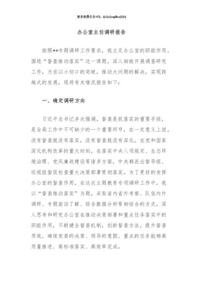 / 【七哥公文】2024年:办公室主任调研报告+更多免费公文+VX:QiGeGongWen2024