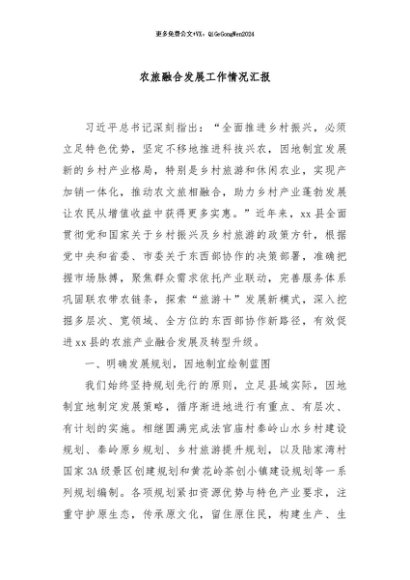 / 【七哥公文】2024年:农旅融合发展工作情况汇报+更多免费公文+VX:QiGeGongWen2024