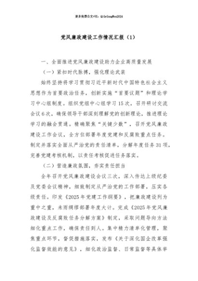 / 【七哥公文】2024年:党风廉政建设工作情况汇报(1)+更多免费公文+VX:QiGeGongWen2024