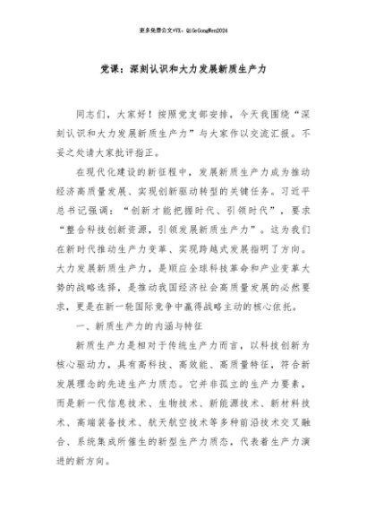 / 【七哥公文】2024年:党课:深刻认识和大力发展新质生产力+更多免费公文+VX:QiGeGongWen2024