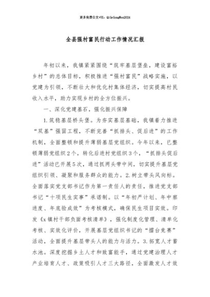 / 【七哥公文】2024年:全县强村富民行动工作情况汇报+更多免费公文+VX:QiGeGongWen2024