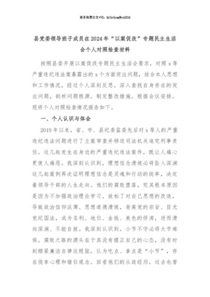 【七哥公文】2024年:县党委领导班子成员在2024年“以案促改”专题民主生活会个人对照检查材料+更多免费公文+VX:QiGeGongWen2024
