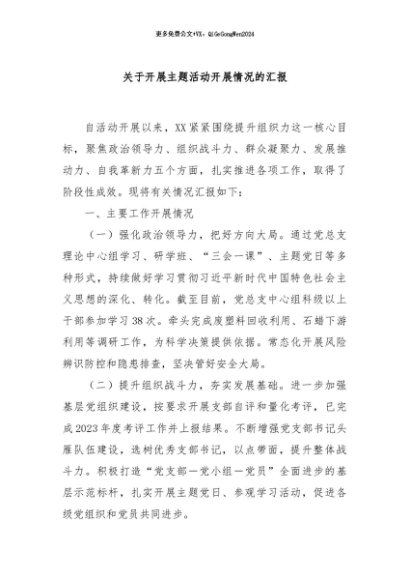 / 【七哥公文】2024年:关于开展主题活动开展情况的汇报+更多免费公文+VX:QiGeGongWen2024
