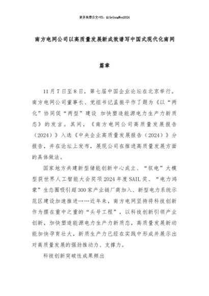 【七哥公文】2024年:南方电网公司以高质量发展新成效谱写中国式现代化南网篇章+更多免费公文+VX:QiGeGongWen2024