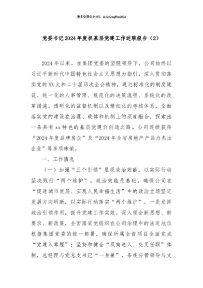 / 【七哥公文】2024年:党委书记2024年度抓基层党建工作述职报告(2)+更多免费公文+VX:QiGeGongWen2024