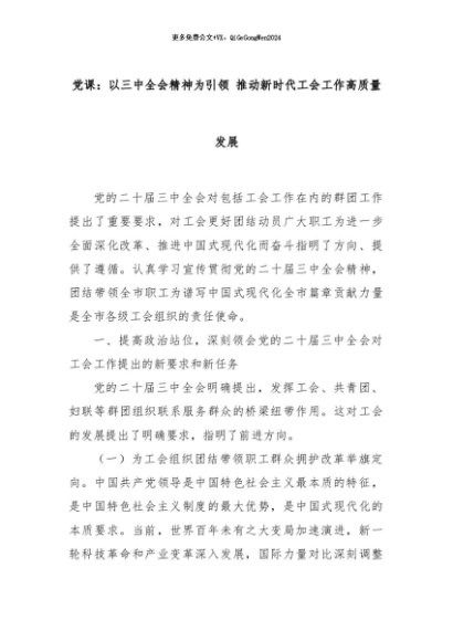 【七哥公文】2024年:党课:以三中全会精神为引领 推动新时代工会工作高质量发展+更多免费公文+VX:QiGeGongWen2024