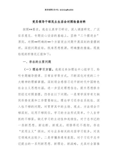 / 【七哥公文】2024年:党员领导干部民主生活会对照检查材料+更多免费公文+VX:QiGeGongWen2024