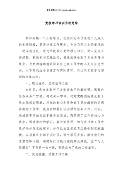 / 【七哥公文】2024年:党校学习培训自我总结+更多免费公文+VX:QiGeGongWen2024