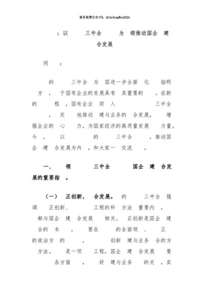 【七哥公文】2024年:党课讲稿:以二十届三中全会精神为引领推动国企党建融合发展+更多免费公文+VX:QiGeGongWen2024