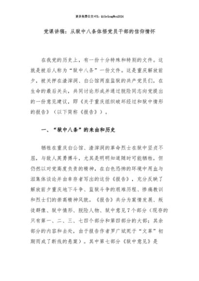 / 【七哥公文】2024年:党课讲稿:从狱中八条体悟党员干部的信仰情怀+更多免费公文+VX:QiGeGongWen2024