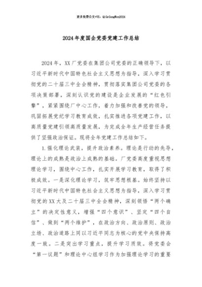 / 【七哥公文】2024年:2024年度国企党委党建工作总结+更多免费公文+VX:QiGeGongWen2024