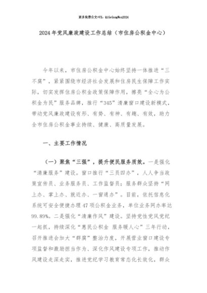 【七哥公文】2024年:2024年党风廉政建设工作总结(市住房公积金中心)+更多免费公文+VX:QiGeGongWen2024