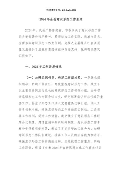 / 【七哥公文】2024年:2024年全县意识形态工作总结+更多免费公文+VX:QiGeGongWen2024