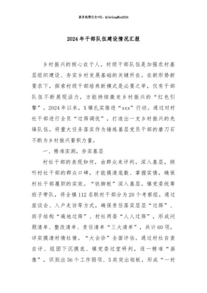 / 【七哥公文】2024年:2024年干部队伍建设情况汇报+更多免费公文+VX:QiGeGongWen2024