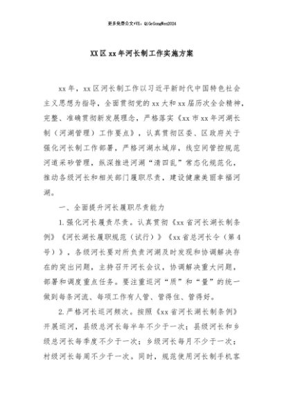 / 【七哥公文】2024年:XX区xx年河长制工作实施方案+更多免费公文+VX:QiGeGongWen2024