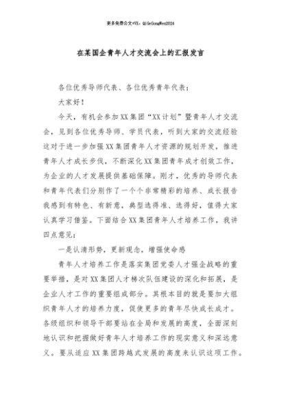 / 【七哥公文】2024年:在某国企青年人才交流会上的汇报发言+更多免费公文+VX:QiGeGongWen2024