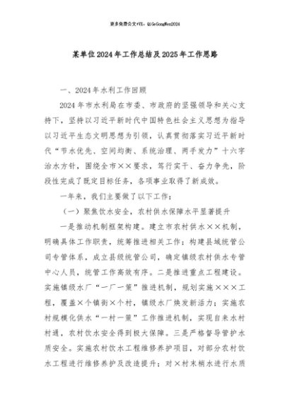 / 【七哥公文】2024年:某单位2024年工作总结及2025年工作思路+更多免费公文+VX:QiGeGongWen2024