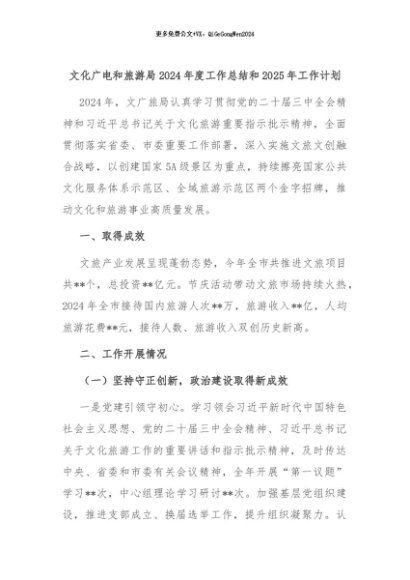 【七哥公文】2024年:文化广电和旅游局2024年度工作总结和2025年工作计划+更多免费公文+VX:QiGeGongWen2024