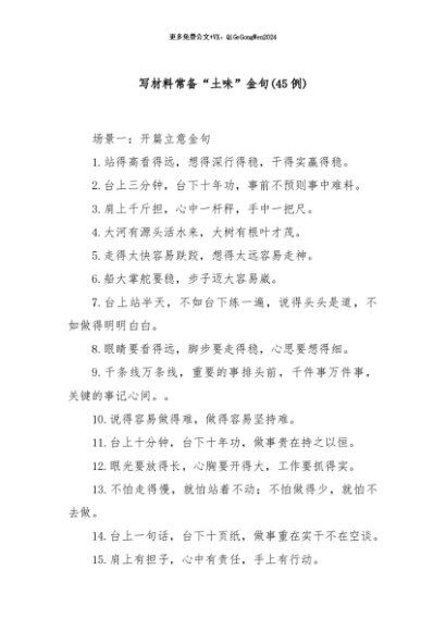 【七哥公文】2024年:(45例)写材料常备“土味”金句+更多免费公文+VX:QiGeGongWen2024