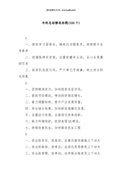 / 【七哥公文】2024年:(100个)年终总结精选标题+更多免费公文+VX:QiGeGongWen2024