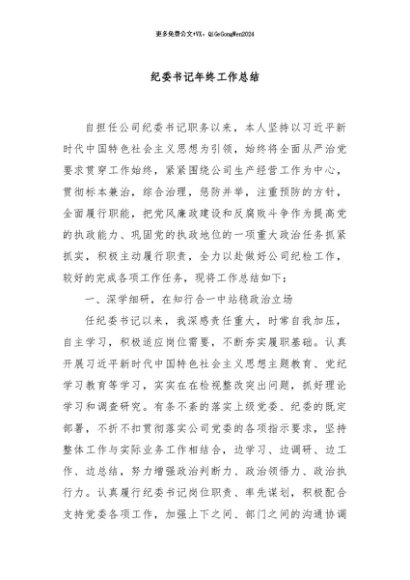 / 【七哥公文】2024年:纪委书记年终工作总结+更多免费公文+VX:QiGeGongWen2024