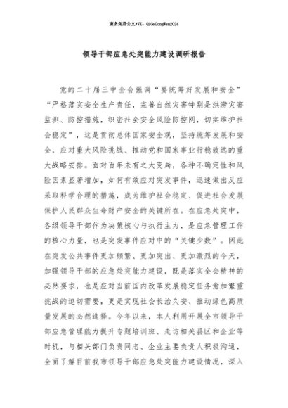 / 【七哥公文】2024年:领导干部应急处突能力建设调研报告+更多免费公文+VX:QiGeGongWen2024