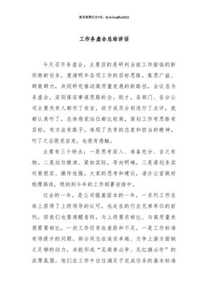 / 【七哥公文】2024年:工作务虚会总结讲话+更多免费公文+VX:QiGeGongWen2024