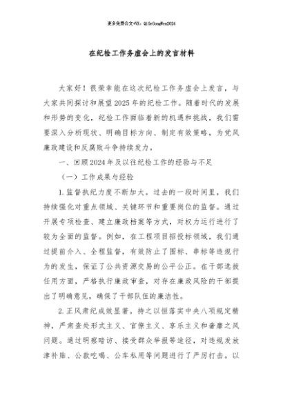 / 【七哥公文】2024年:在纪检工作务虚会上的发言材料+更多免费公文+VX:QiGeGongWen2024