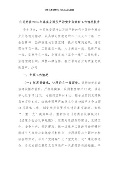 【七哥公文】2024年:公司党委2024年落实全面从严治党主体责任工作情况报告+更多免费公文+VX:QiGeGongWen2024