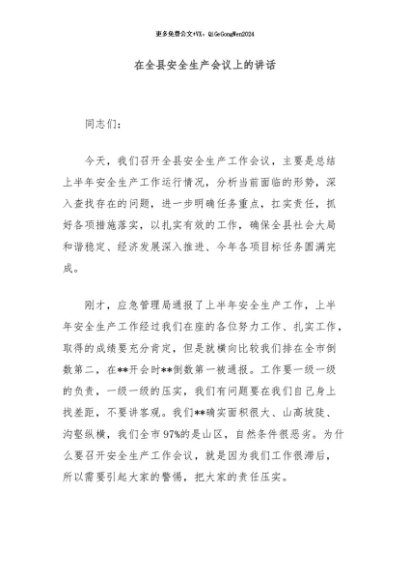 / 【七哥公文】2024年:在全县安全生产会议上的讲话+更多免费公文+VX:QiGeGongWen2024