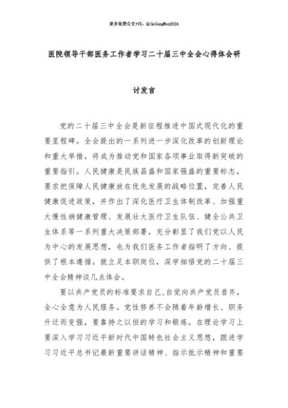 【七哥公文】2024年:医院领导干部医务工作者学习二十届三中全会心得体会研讨发言+更多免费公文+VX:QiGeGongWen2024