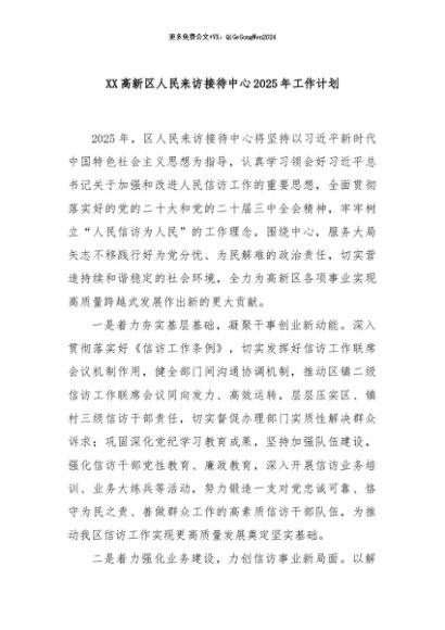/ 【七哥公文】2024年:XX高新区人民来访接待中心2025年工作计划+更多免费公文+VX:QiGeGongWen2024
