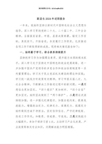 / 【七哥公文】2024年:副县长2024年述职报告+更多免费公文+VX:QiGeGongWen2024