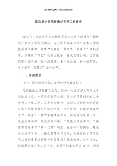 / 【七哥公文】2024年:区政府办述职述廉述党建工作报告+更多免费公文+VX:QiGeGongWen2024
