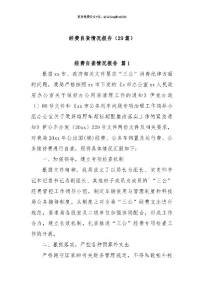 / 【七哥公文】2024年:(29篇)经费自查情况报告+更多免费公文+VX:QiGeGongWen2024