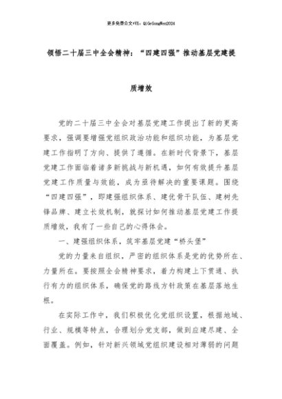 【七哥公文】2024年:领悟二十届三中全会精神:“四建四强”推动基层党建提质增效+更多免费公文+VX:QiGeGongWen2024